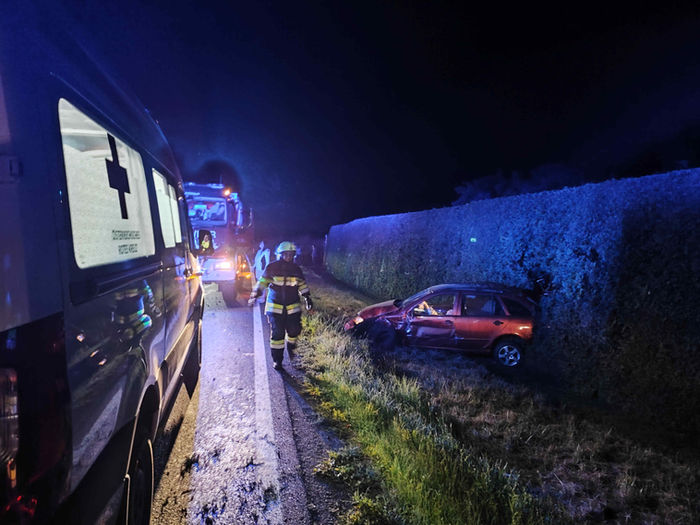 Beim Eintreffen am Einsatzort stellte sich heraus, dass zwei Pkw aus unbekannter Ursache auf der B54 bei Kilometer 91,4 kollidiert waren, wovon ein PKW in den Straßengraben geschleudert wurde und in einer Hecke zum Stillstand kam.